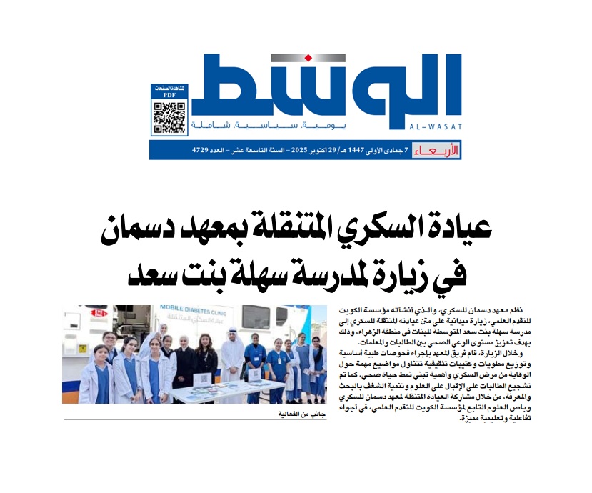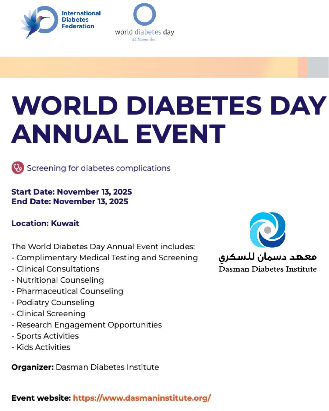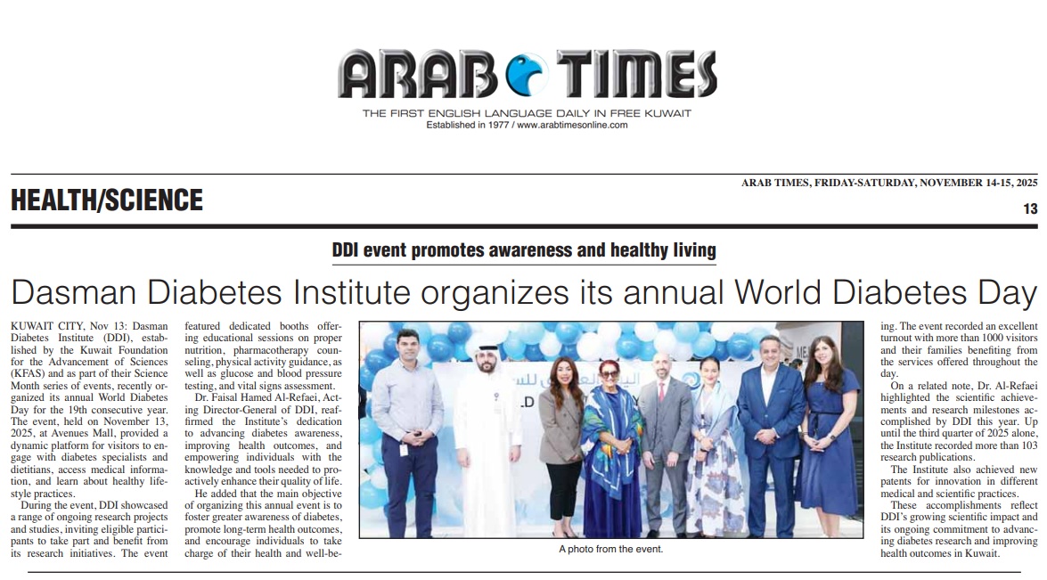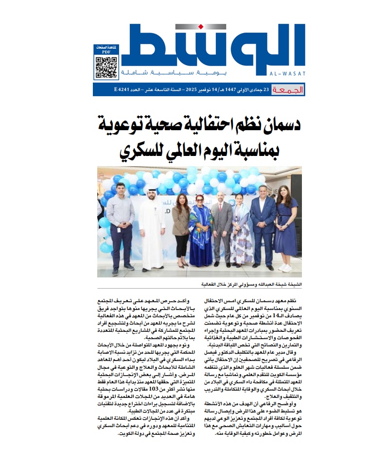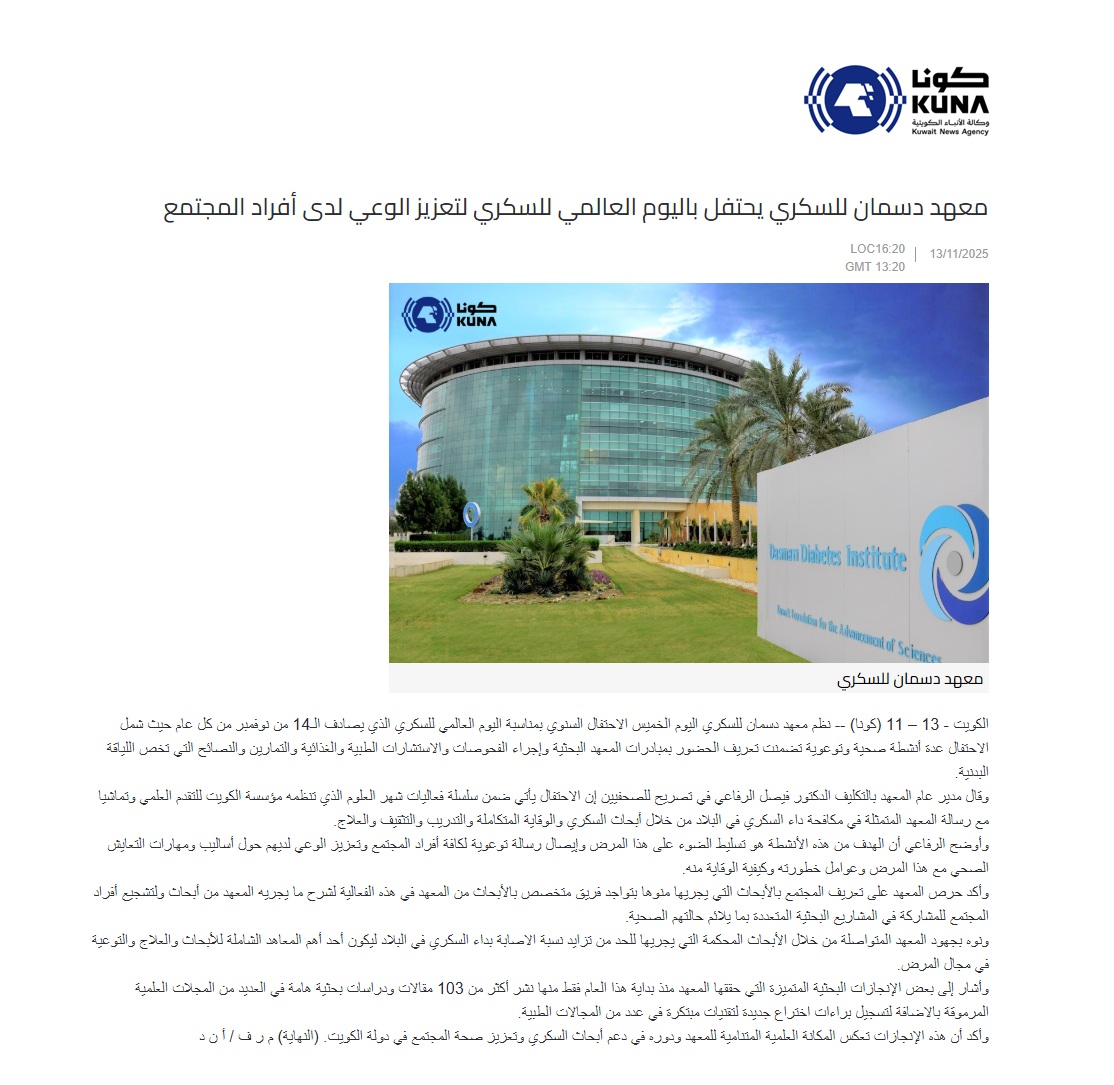 رسالة المعهد مكافحة مرض السكري في الكويت من خلال أبحاث مرض السكري المتقدمة والوقاية المتكاملة والتدريب والتعليم.
