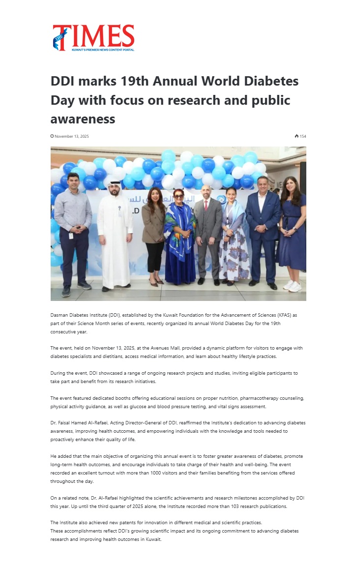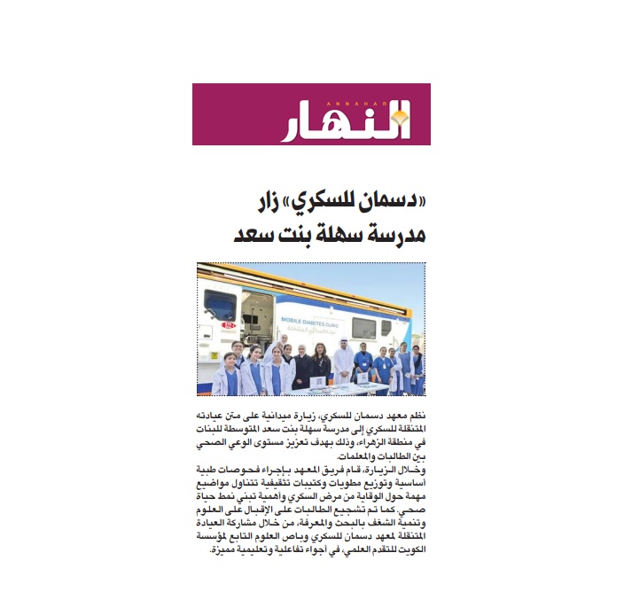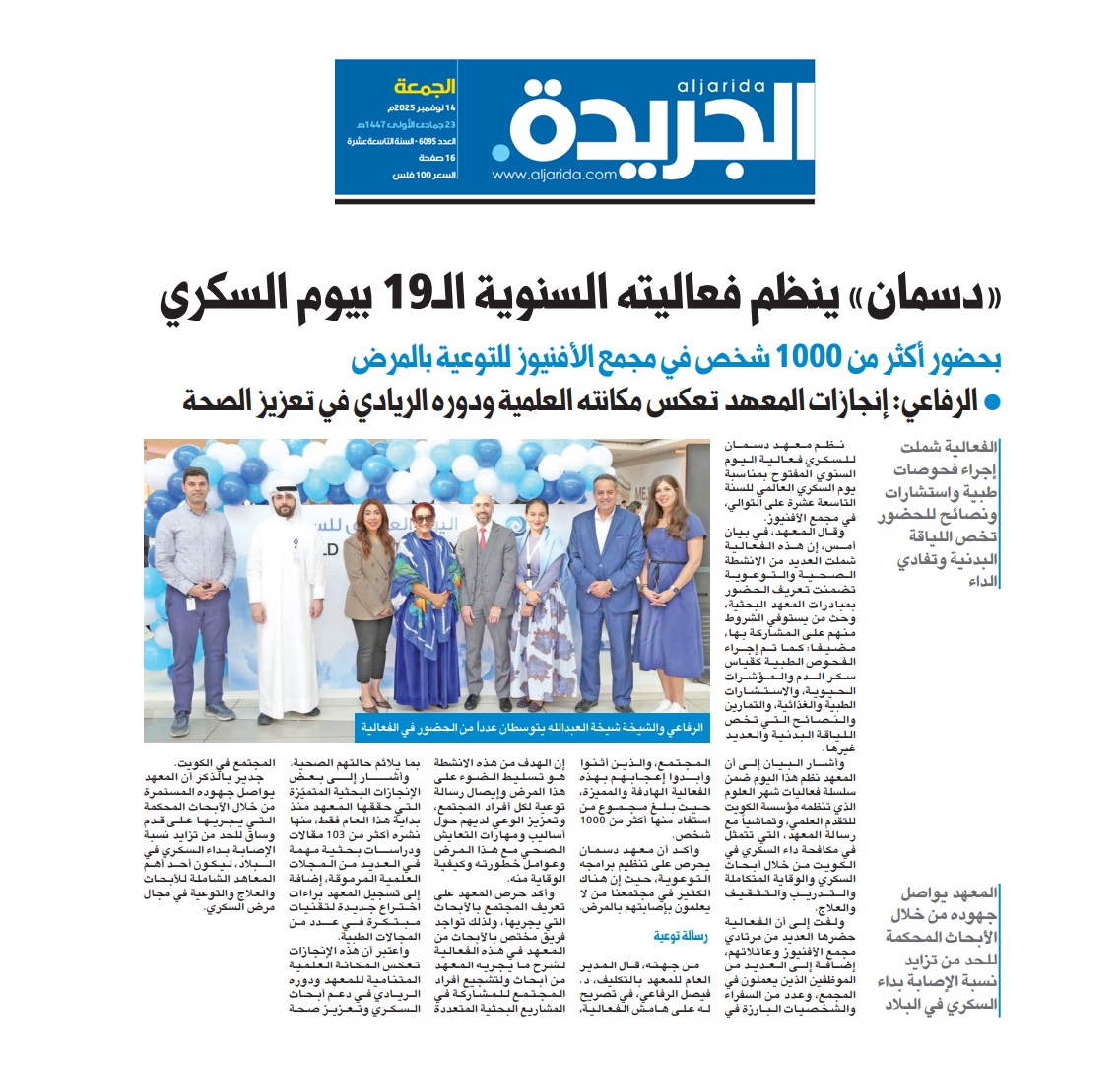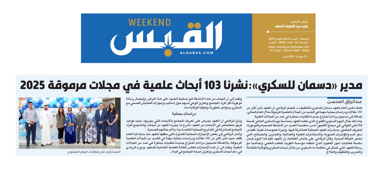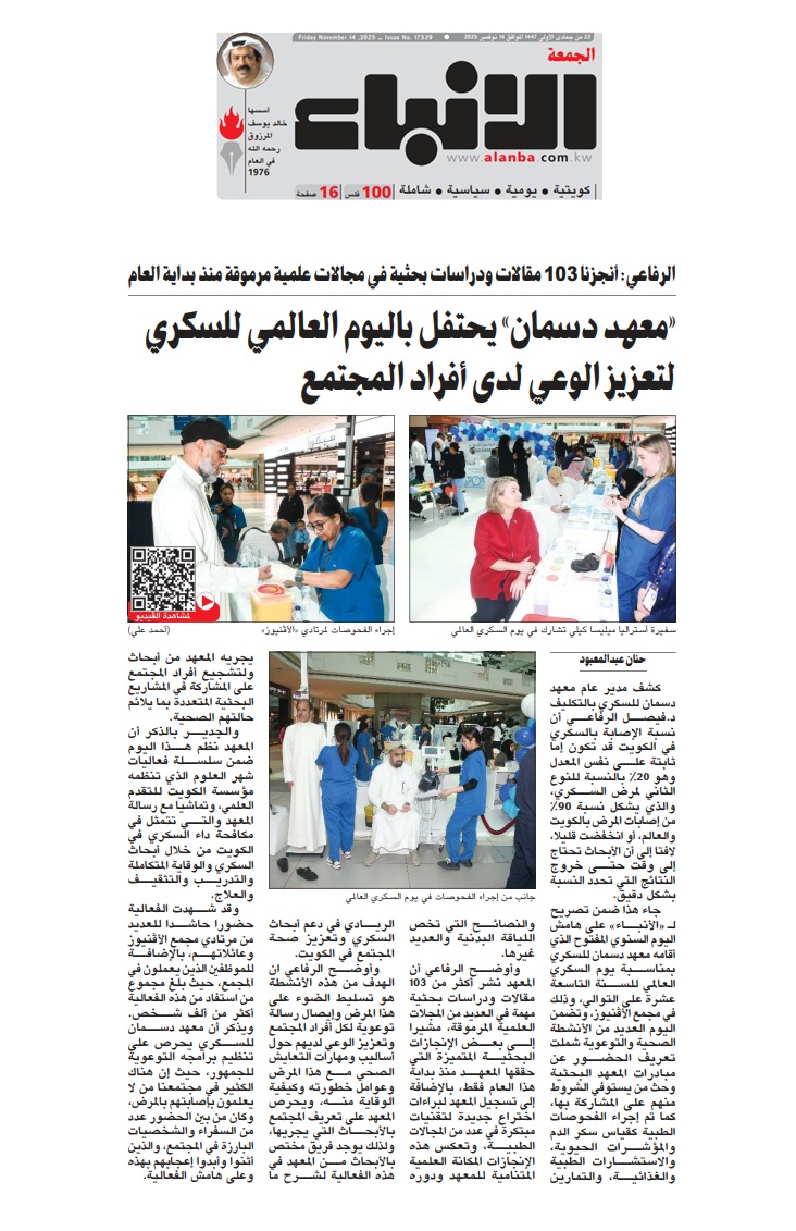 رسالة المعهد مكافحة مرض السكري في الكويت من خلال أبحاث مرض السكري المتقدمة والوقاية المتكاملة والتدريب والتعليم.
