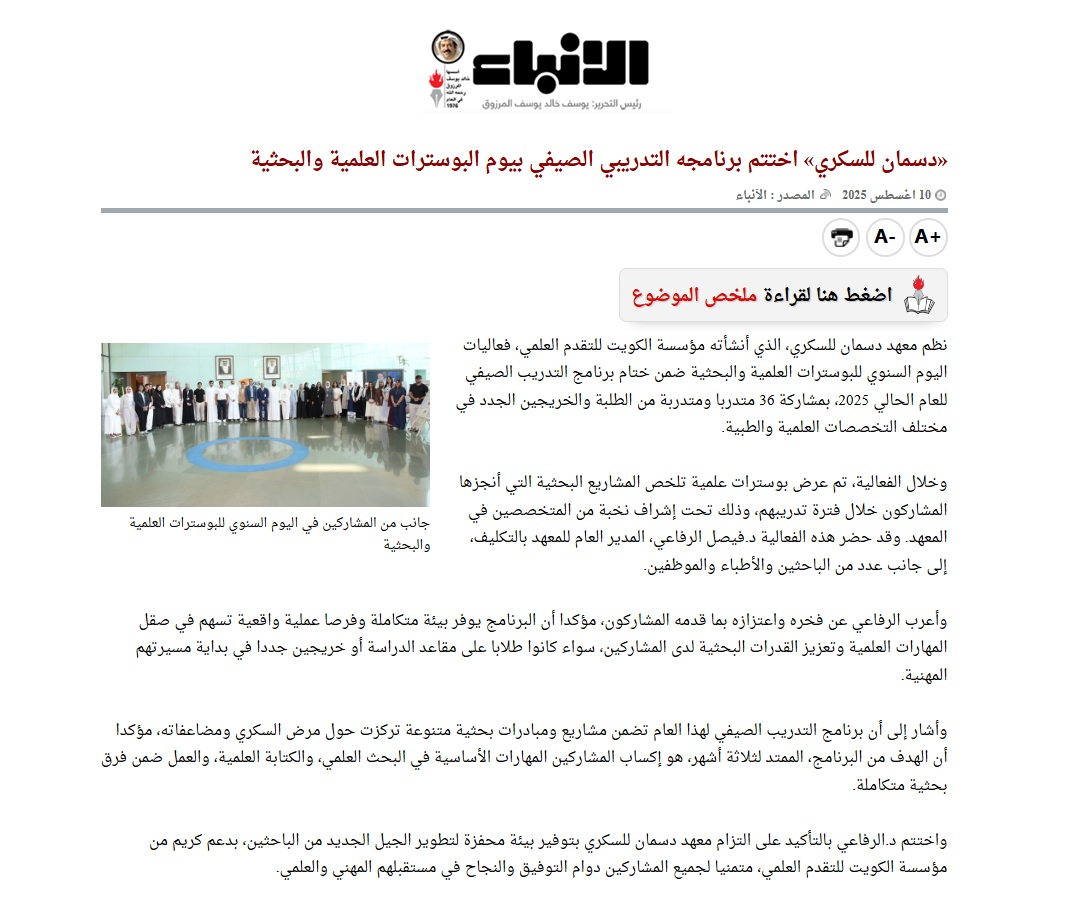 رسالة المعهد مكافحة مرض السكري في الكويت من خلال أبحاث مرض السكري المتقدمة والوقاية المتكاملة والتدريب والتعليم.