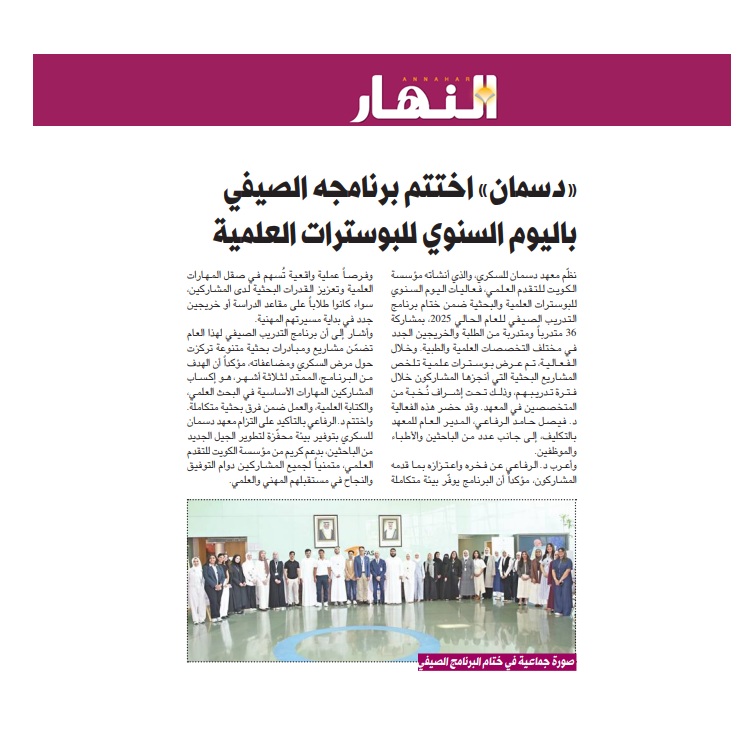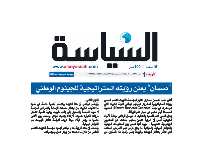 تأسس معهد دسمان للسكري تحت رعاية صاحب السمو الشيخ جابر الأحمد الصباح أمير دولة الكويت الراحل، ومؤسسة الكويت للتقدم العلمي (KFAS) لمكافحة انتشار مرض السكري في الكويت.