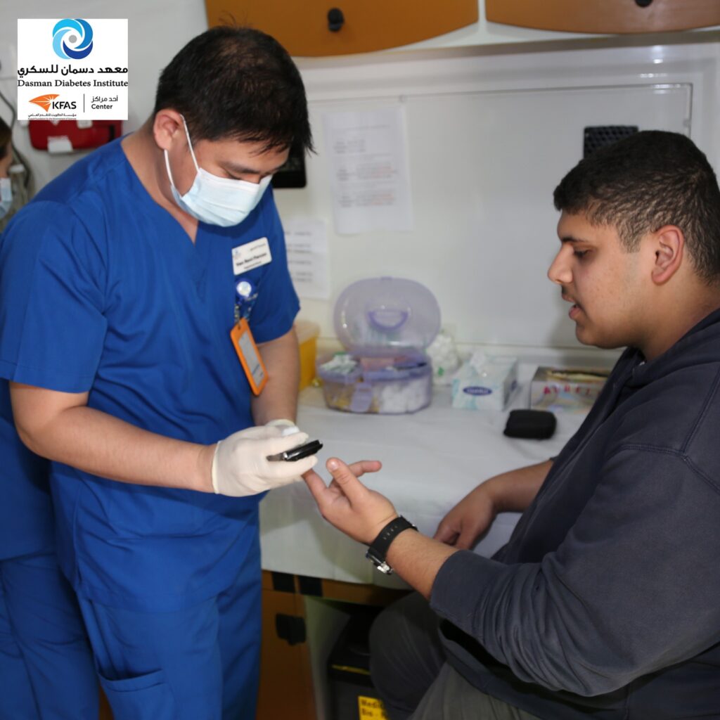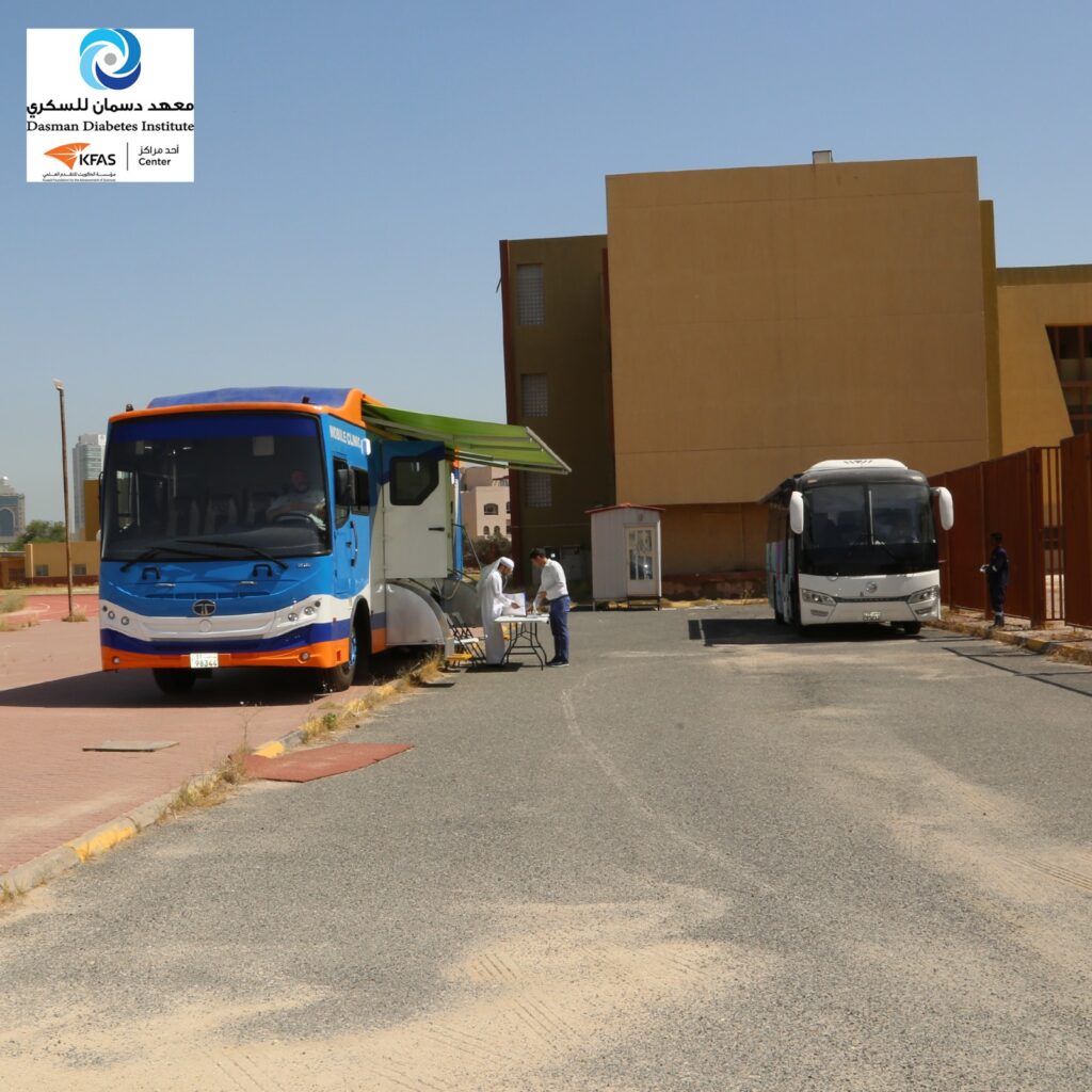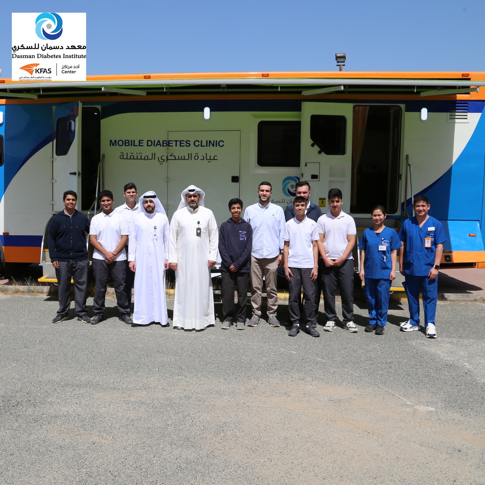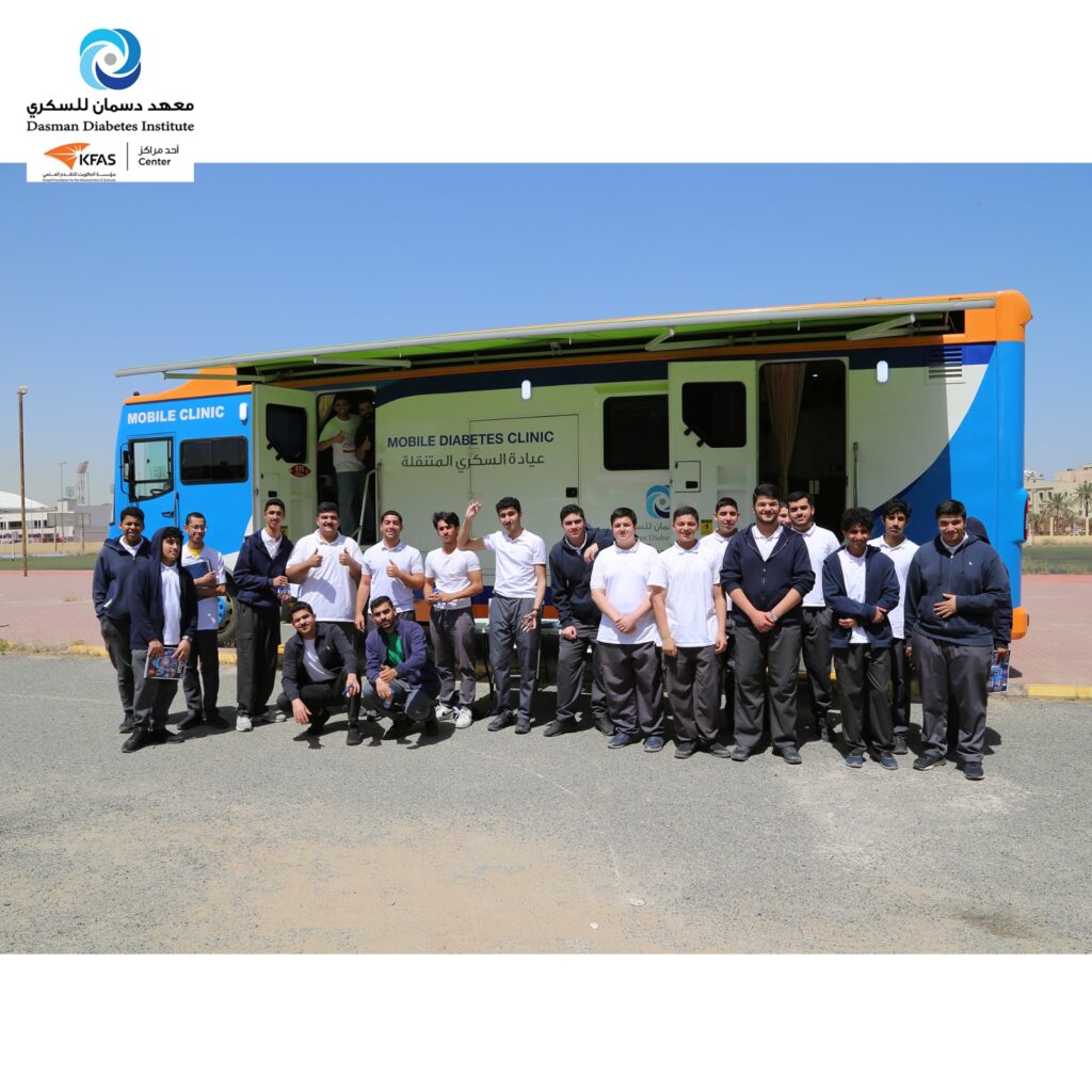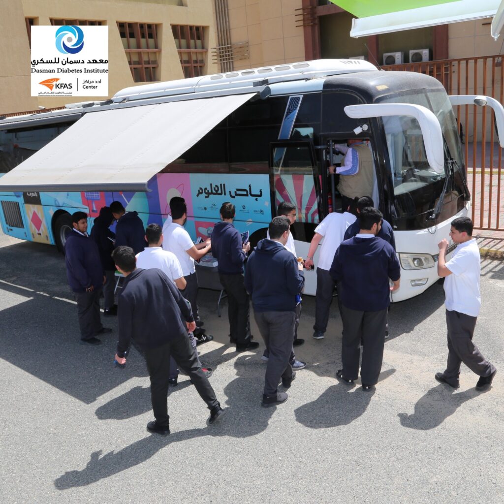 Dasman Diabetes Institute’s Diabetes Mobile Clinic Visits Ahmed Al-Bashar Al-Rumi High School for Boys in cooperation with the Science Bus of the Kuwait Foundation for the Advancement of Sciences (KFAS), conducted examinations for students and teachers and provided them with medical consultations and awareness brochures at Ahmed Al-Bashar Al-Rumi High School for Boys in Al-Daiya area.
