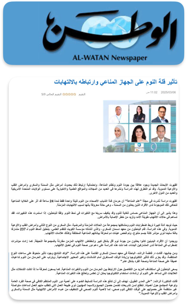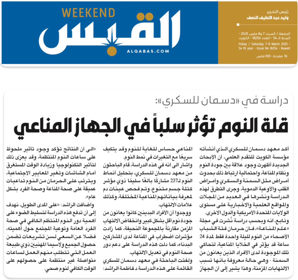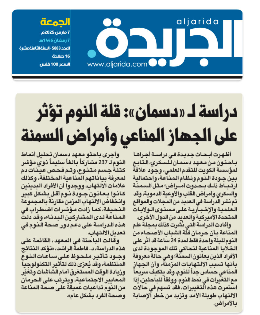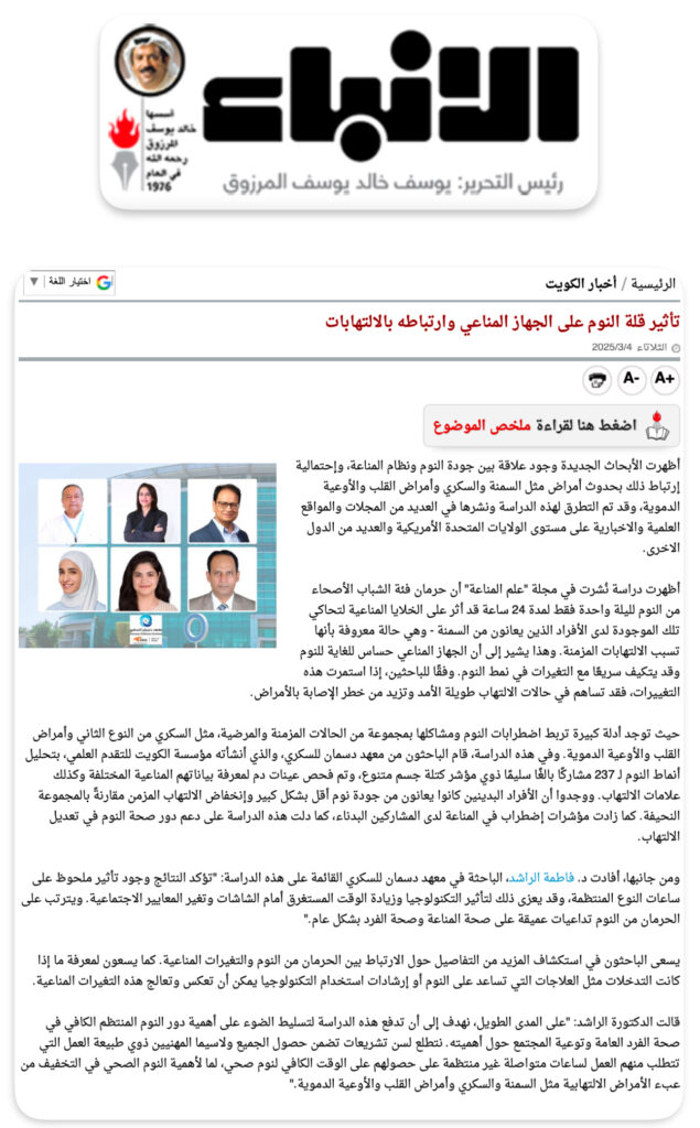 Researchers at the Dasman Diabetes Institute in Dasman, Kuwait, aimed to investigate how sleep quality impacts systemic inflammation and immune response in 237 participants.