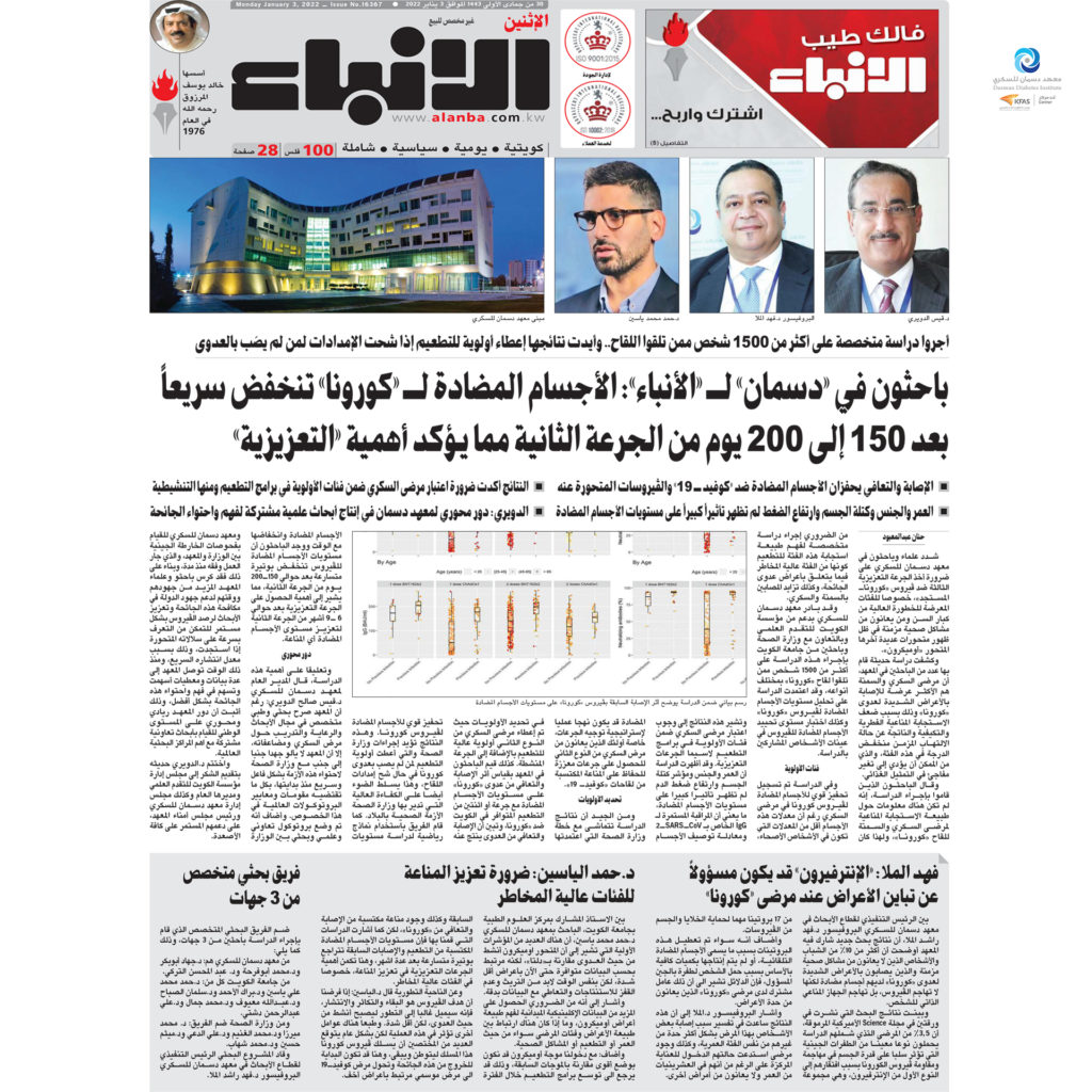 Home » Research at DDI » Research in the News » Alanbaa- DDI’s researchers stress the importance of the COVID-19 booster shot Alanbaa- DDI’s researchers stress the importance of the COVID-19 booster shot Published on 03/01/2022