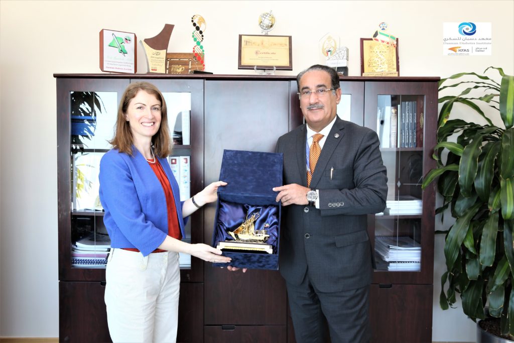 وتم التطرق الى العديد من الموضوعات والقضايا العلمية والبحثية ذات الاهتمام المشترك بين الطرفين. واستعرض الدويري مع السفيرة مسيرة المعهد العلمية وأهميته ودوره كصرح شامخ في خدمة البحث العلمي في الكويت، مناقشا سبل تعزيز التعاون البحثي والعلمي المشترك.
