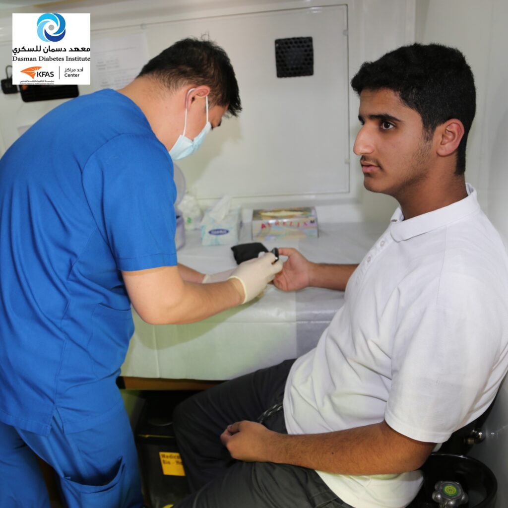 Dasman Diabetes Institute’s Diabetes Mobile Clinic Visits Ahmed Al-Bashar Al-Rumi High School for Boys in cooperation with the Science Bus of the Kuwait Foundation for the Advancement of Sciences (KFAS), conducted examinations for students and teachers and provided them with medical consultations and awareness brochures at Ahmed Al-Bashar Al-Rumi High School for Boys in Al-Daiya area.