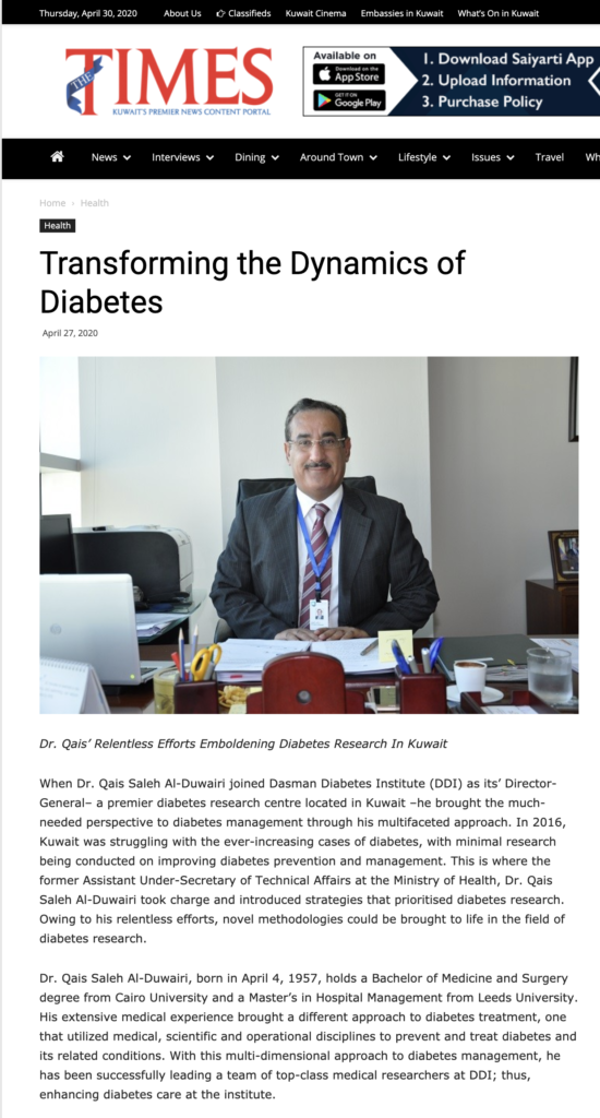 Home » Research at DDI » Research in the News » Times: Transforming the dynamics of diabetes Times: Transforming the dynamics of diabetes Published on 27/04/2020